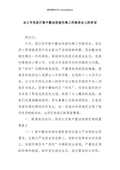 【七哥公文】2025年:【七哥公文】在X市民政厅集中整治违规吃喝工作推进会上的讲话+更多免费公文+VX:QiGeGongWen2024+更多免费公文+VX:QiGeGongWen2024