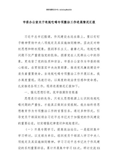 【七哥公文】2025年:【七哥公文】市委办公室关于违规吃喝专项整治工作进展情况汇报+更多免费公文+VX:QiGeGongWen2024+更多免费公文+VX:QiGeGongWen2024