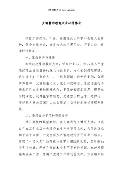 【七哥公文】2025年:【七哥公文】乡镇警示教育大会心得体会+更多免费公文+VX:QiGeGongWen2024+更多免费公文+VX:QiGeGongWen2024