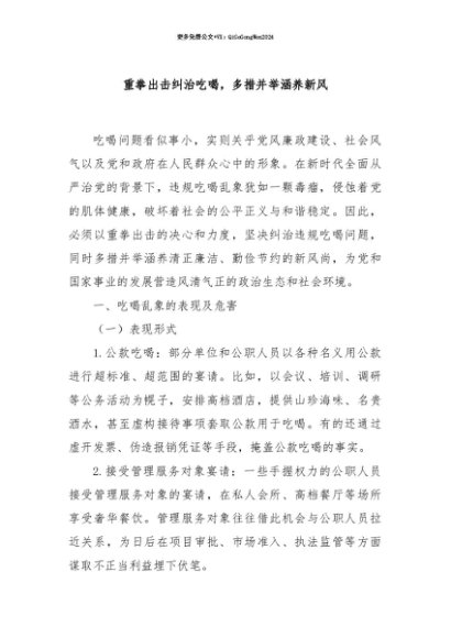【七哥公文】2025年:【七哥公文】重拳出击纠治吃喝,多措并举涵养新风+更多免费公文+VX:QiGeGongWen2024+更多免费公文+VX:QiGeGongWen2024