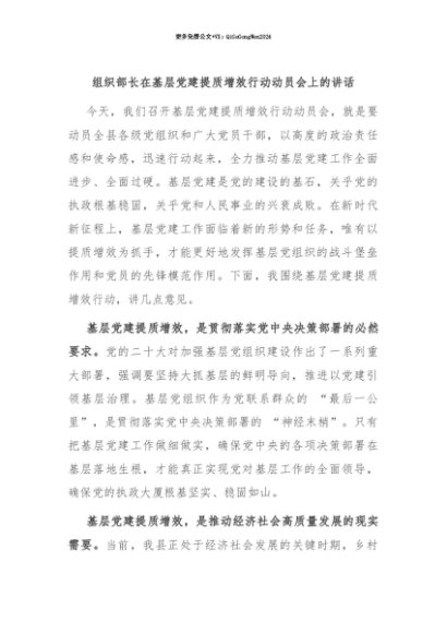 【七哥公文】2025年:【七哥公文】组织部长在基层党建提质增效行动动员会上的讲话+更多免费公文+VX:QiGeGongWen2024+更多免费公文+VX:QiGeGongWen2024