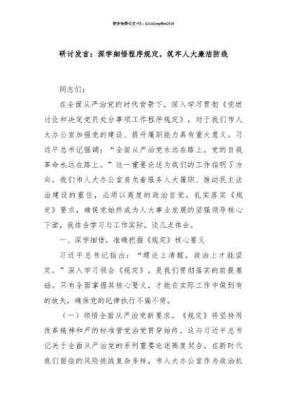 【七哥公文】2025年:【七哥公文】研讨发言:深学细悟程序规定,筑牢人大廉洁防线+更多免费公文+VX:QiGeGongWen2024+更多免费公文+VX:QiGeGongWen2024