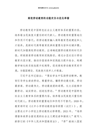 【七哥公文】2025年:【七哥公文】高校劳动教育的功能定位与优化举措+更多免费公文+VX:QiGeGongWen2024+更多免费公文+VX:QiGeGongWen2024
