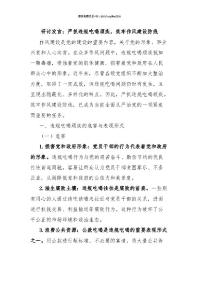 【七哥公文】2025年:【七哥公文】研讨发言:严抓违规吃喝顽疾,筑牢作风建设防线+更多免费公文+VX:QiGeGongWen2024+更多免费公文+VX:QiGeGongWen2024