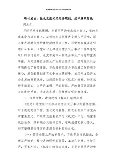 【七哥公文】2025年:【七哥公文】研讨发言:强化党组党纪处分职能,筑牢廉政防线+更多免费公文+VX:QiGeGongWen2024+更多免费公文+VX:QiGeGongWen2024