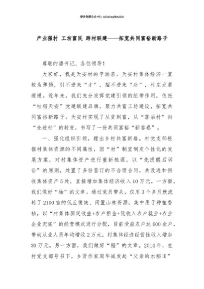 【七哥公文】2025年:【七哥公文】产业强村 工坊富民 跨村联建——拓宽共同富裕新路子+更多免费公文+VX:QiGeGongWen2024+更多免费公文+VX:QiGeGongWen2024