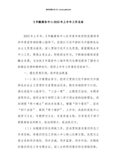 【七哥公文】2025年:【七哥公文】X市融媒体中心2025年上半年工作总结+更多免费公文+VX:QiGeGongWen2024+更多免费公文+VX:QiGeGongWen2024