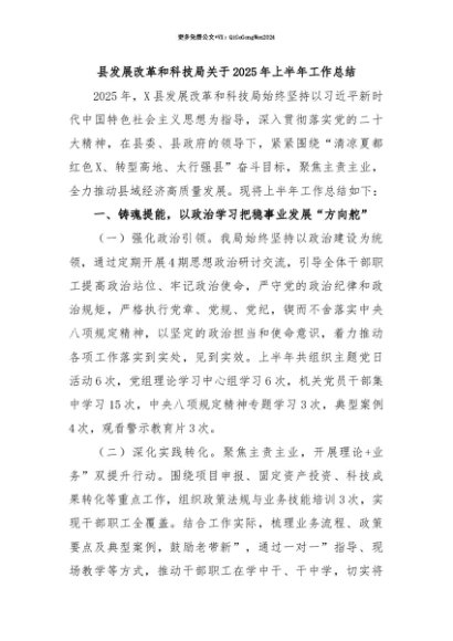 【七哥公文】2025年:【七哥公文】县发展改革和科技局关于2025年上半年工作总结+更多免费公文+VX:QiGeGongWen2024+更多免费公文+VX:QiGeGongWen2024