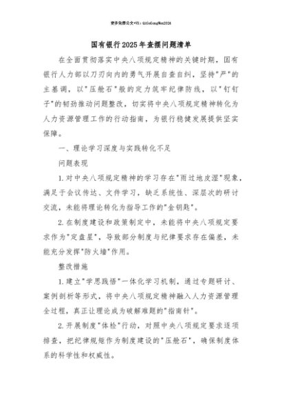 【七哥公文】2025年:【七哥公文】国有银行2025年查摆问题清单_副本+更多免费公文+VX:QiGeGongWen2024+更多免费公文+VX:QiGeGongWen2024