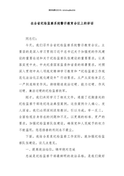 【七哥公文】2025年:【七哥公文】在全省纪检监察系统警示教育会议上的讲话+更多免费公文+VX:QiGeGongWen2024+更多免费公文+VX:QiGeGongWen2024