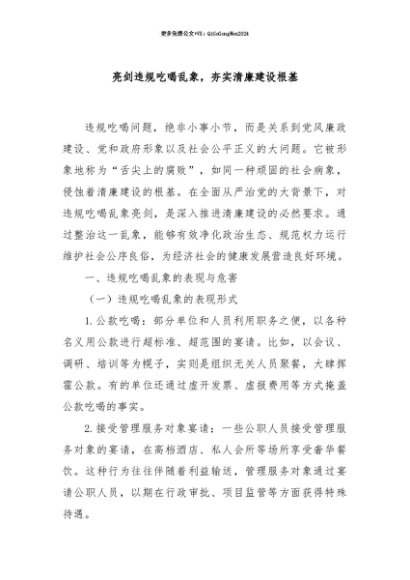 【七哥公文】2025年:【七哥公文】亮剑违规吃喝乱象,夯实清廉建设根基+更多免费公文+VX:QiGeGongWen2024+更多免费公文+VX:QiGeGongWen2024