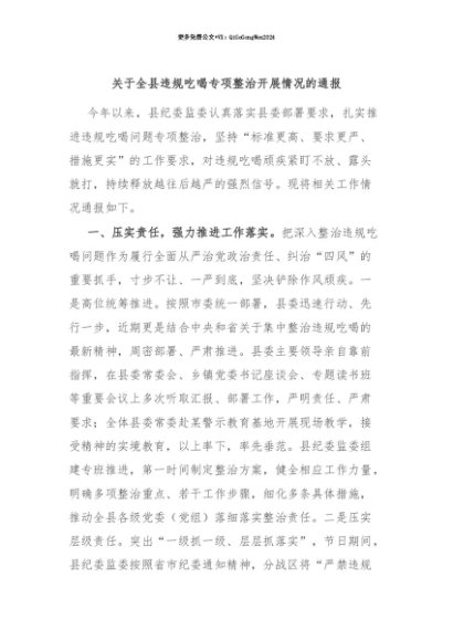 【七哥公文】2025年:【七哥公文】关于全县违规吃喝专项整治开展情况的通报+更多免费公文+VX:QiGeGongWen2024+更多免费公文+VX:QiGeGongWen2024