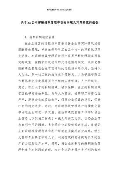 【七哥公文】2025年:【七哥公文】关于xx公司薪酬绩效管理存在的问题及对策研究的报告+更多免费公文+VX:QiGeGongWen2024+更多免费公文+VX:QiGeGongWen2024