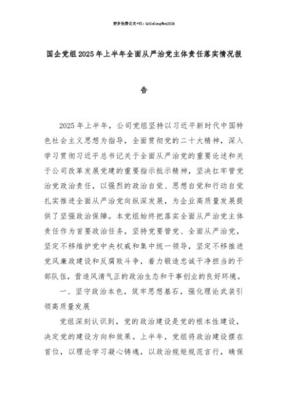 【七哥公文】2025年:【七哥公文】国企党组2025年上半年全面从严治党主体责任落实情况报告+更多免费公文+VX:QiGeGongWen2024+更多免费公文+VX:QiGeGongWen2024
