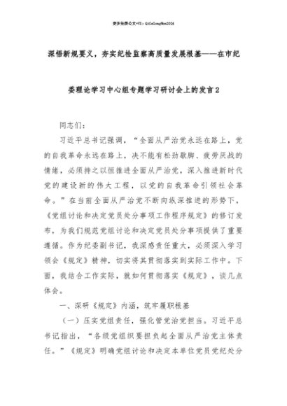 【七哥公文】2025年:【七哥公文】深悟新规要义,夯实纪检监察高质量发展根基——在市纪委理论学习中心组专题学习研讨会上的发言2+更多免费公文+VX:QiGeGongWen2024+更多免费公文+VX:QiGeGongWen2024