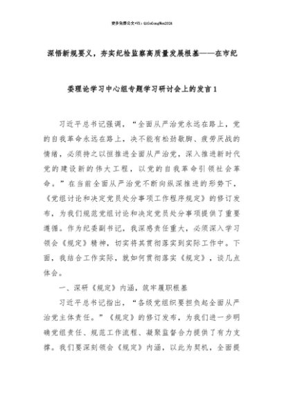 【七哥公文】2025年:【七哥公文】深悟新规要义,夯实纪检监察高质量发展根基——在市纪委理论学习中心组专题学习研讨会上的发言1+更多免费公文+VX:QiGeGongWen2024+更多免费公文+VX:QiGeGongWen2024