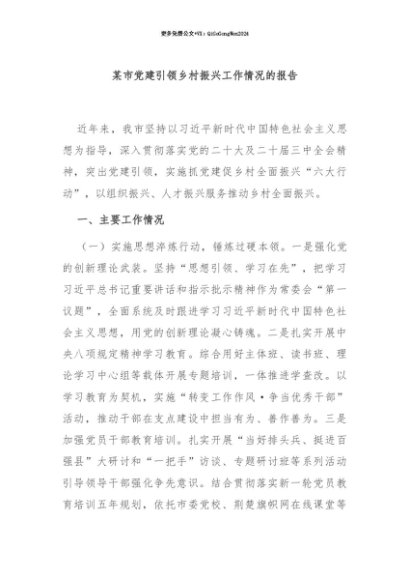 【七哥公文】2025年:【七哥公文】某市党建引领乡村振兴工作情况的报告+更多免费公文+VX:QiGeGongWen2024+更多免费公文+VX:QiGeGongWen2024