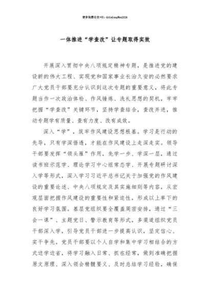 【七哥公文】2025年:【七哥公文】一体推进“学查改”让专题取得实效+更多免费公文+VX:QiGeGongWen2024+更多免费公文+VX:QiGeGongWen2024