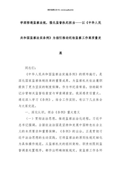 【七哥公文】2025年:【七哥公文】学深悟透监察法规,强化监督执纪担当——以《中华人民共和国监察法实条例》为指引推动纪检监察工作高质量发展+更多免费公文+VX:QiGeGongWen2024+更多免费公文+VX:QiGeGongWen2024