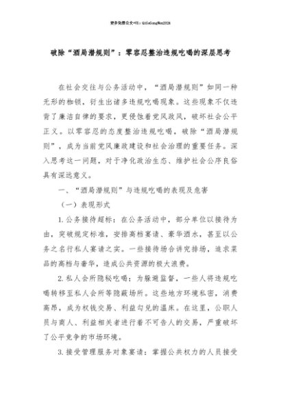 【七哥公文】2025年:【七哥公文】破除“酒局潜规则”:零容忍整治违规吃喝的深层思考+更多免费公文+VX:QiGeGongWen2024+更多免费公文+VX:QiGeGongWen2024