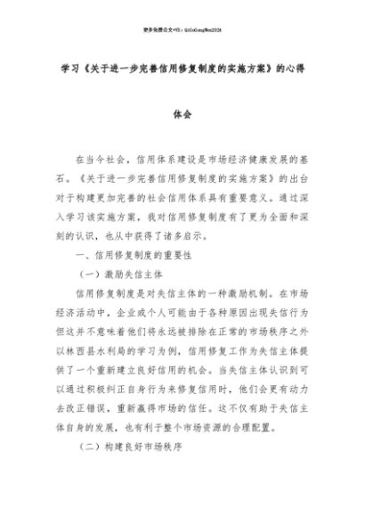 【七哥公文】2025年:【七哥公文】学习《关于进一步完善信用修复制度的实施方案》的心得体会+更多免费公文+VX:QiGeGongWen2024+更多免费公文+VX:QiGeGongWen2024