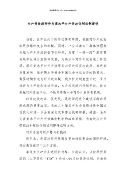 【七哥公文】2025年:【七哥公文】对外开放新形势与高水平对外开放体制机制建设+更多免费公文+VX:QiGeGongWen2024+更多免费公文+VX:QiGeGongWen2024
