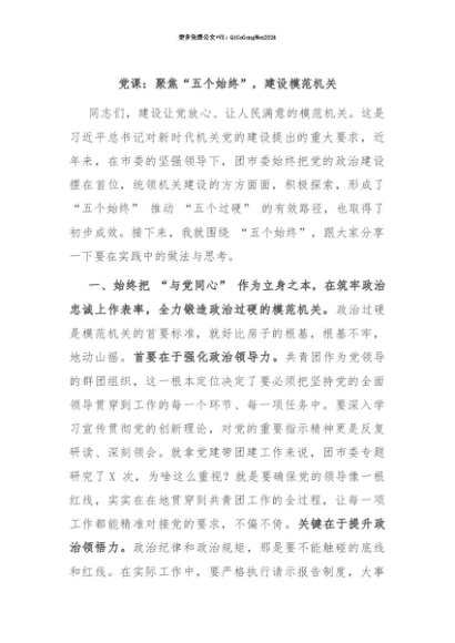【七哥公文】2025年:【七哥公文】党课:聚焦“五个始终”,建设模范机关+更多免费公文+VX:QiGeGongWen2024+更多免费公文+VX:QiGeGongWen2024