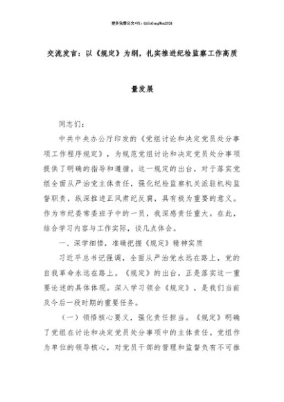 【七哥公文】2025年:【七哥公文】交流发言:以《规定》为纲,扎实推进纪检监察工作高质量发展+更多免费公文+VX:QiGeGongWen2024+更多免费公文+VX:QiGeGongWen2024