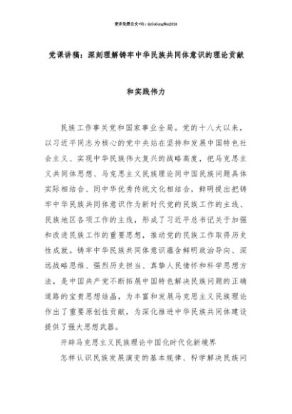 【七哥公文】2025年:【七哥公文】党课讲稿:深刻理解铸牢中华民族共同体意识的理论贡献和实践伟力+更多免费公文+VX:QiGeGongWen2024+更多免费公文+VX:QiGeGongWen2024