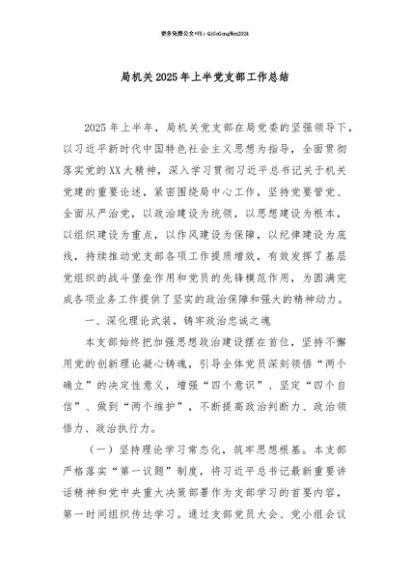 【七哥公文】2025年:【七哥公文】局机关2025年上半党支部工作总结+更多免费公文+VX:QiGeGongWen2024+更多免费公文+VX:QiGeGongWen2024