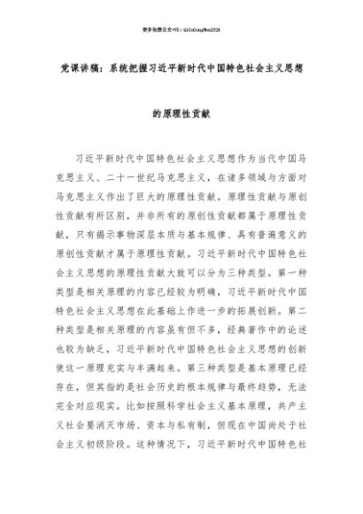 【七哥公文】2025年:【七哥公文】党课讲稿:系统把握习近平新时代中国特色社会主义思想的原理性贡献+更多免费公文+VX:QiGeGongWen2024+更多免费公文+VX:QiGeGongWen2024