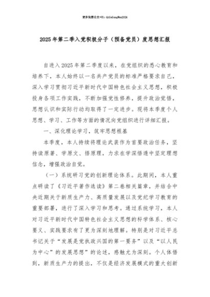 【七哥公文】2025年:【七哥公文】2025年第二季入党积极分子(预备党员)度思想汇报+更多免费公文+VX:QiGeGongWen2024+更多免费公文+VX:QiGeGongWen2024