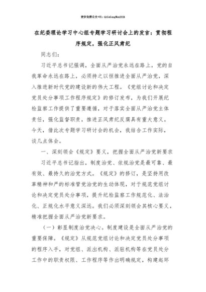 【七哥公文】2025年:【七哥公文】在纪委理论学习中心组专题学习研讨会上的发言:贯彻程序规定,强化正风肃纪+更多免费公文+VX:QiGeGongWen2024+更多免费公文+VX:QiGeGongWen2024