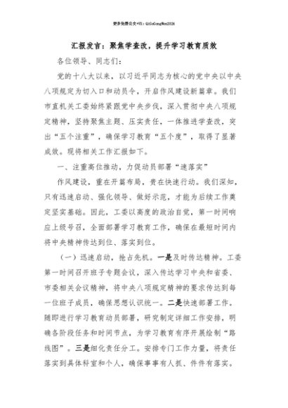 【七哥公文】2025年:【七哥公文】汇报发言:聚焦学查改,提升学习教育质效+更多免费公文+VX:QiGeGongWen2024+更多免费公文+VX:QiGeGongWen2024