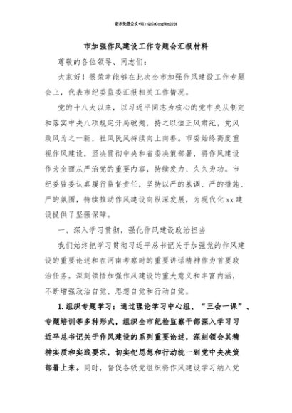 【七哥公文】2025年:【七哥公文】市加强作风建设工作专题会汇报材料+更多免费公文+VX:QiGeGongWen2024+更多免费公文+VX:QiGeGongWen2024