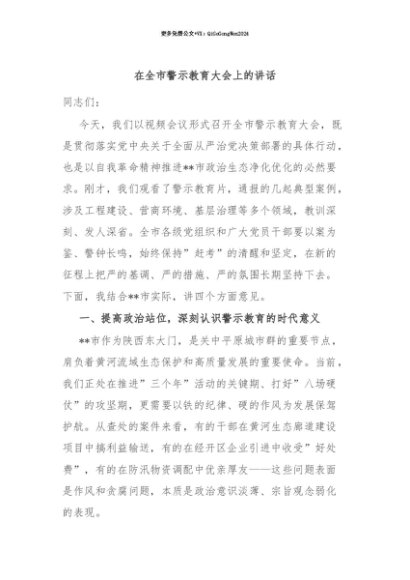 【七哥公文】2025年:【七哥公文】在全市警示教育大会上的讲话+更多免费公文+VX:QiGeGongWen2024+更多免费公文+VX:QiGeGongWen2024