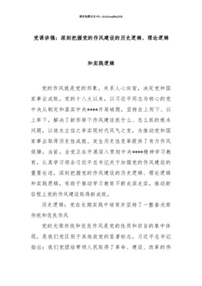 【七哥公文】2025年:【七哥公文】党课讲稿:深刻把握党的作风建设的历史逻辑、理论逻辑和实践逻辑+更多免费公文+VX:QiGeGongWen2024+更多免费公文+VX:QiGeGongWen2024