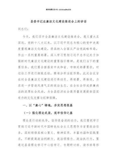 【七哥公文】2025年:【七哥公文】县委书记在廉洁文化建设推进会上的讲话+更多免费公文+VX:QiGeGongWen2024+更多免费公文+VX:QiGeGongWen2024