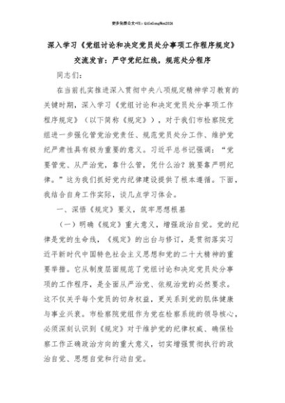 【七哥公文】2025年:【七哥公文】深入学习《党组讨论和决定党员处分事项工作程序规定》交流发言:严守党纪红线,规范处分程序+更多免费公文+VX:QiGeGongWen2024+更多免费公文+VX:QiGeGongWen2024