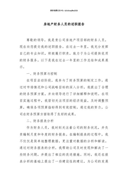 【七哥公文】2025年:【七哥公文】房地产财务人员的述职报告+更多免费公文+VX:QiGeGongWen2024+更多免费公文+VX:QiGeGongWen2024