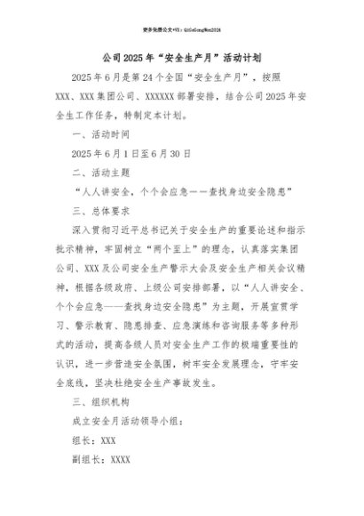 【七哥公文】2025年:【七哥公文】公司2025年“安全生产月”活动计划+更多免费公文+VX:QiGeGongWen2024+更多免费公文+VX:QiGeGongWen2024