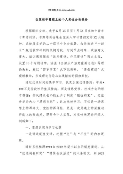 【七哥公文】2025年:【七哥公文】在党校中青班上的个人党性分析报告+更多免费公文+VX:QiGeGongWen2024+更多免费公文+VX:QiGeGongWen2024
