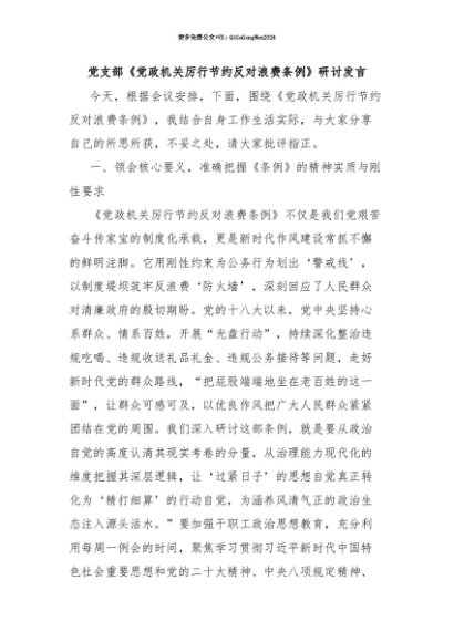 【七哥公文】2025年:【七哥公文】党支部《党政机关厉行节约反对浪费条例》研讨发言+更多免费公文+VX:QiGeGongWen2024+更多免费公文+VX:QiGeGongWen2024