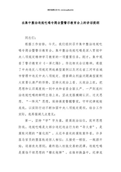【七哥公文】2025年:【七哥公文】在集中整治违规吃喝专题会暨警示教育会上的讲话提纲+更多免费公文+VX:QiGeGongWen2024+更多免费公文+VX:QiGeGongWen2024