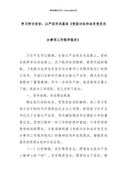 【七哥公文】2025年:【七哥公文】学习研讨发言:以严实作风落实《党组讨论和决定党员处分事项工作程序规定》+更多免费公文+VX:QiGeGongWen2024+更多免费公文+VX:QiGeGongWen2024