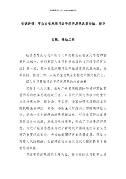 【七哥公文】2025年:【七哥公文】党课讲稿:更加自觉地用习近平经济思想武装头脑、指导实践、推动工作+更多免费公文+VX:QiGeGongWen2024+更多免费公文+VX:QiGeGongWen2024