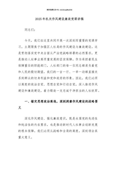 【七哥公文】2025年:【七哥公文】2025年机关作风建设廉政党课讲稿+更多免费公文+VX:QiGeGongWen2024+更多免费公文+VX:QiGeGongWen2024