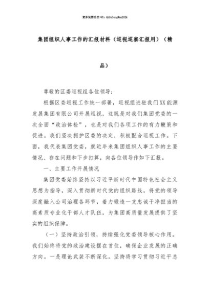 【七哥公文】2025年:【七哥公文】集团组织人事工作的汇报材料(巡视巡察汇报用)(精品)+更多免费公文+VX:QiGeGongWen2024+更多免费公文+VX:QiGeGongWen2024