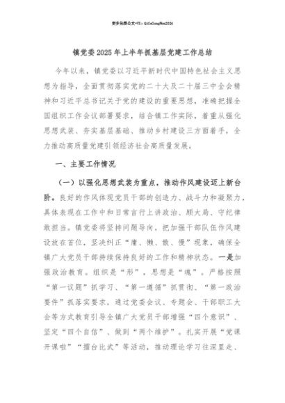【七哥公文】2025年:【七哥公文】镇党委2025年上半年抓基层党建工作总结+更多免费公文+VX:QiGeGongWen2024+更多免费公文+VX:QiGeGongWen2024