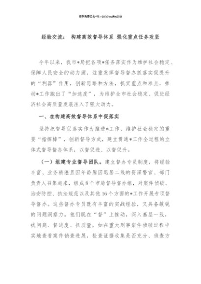 【七哥公文】2025年:【七哥公文】经验交流: 构建高效督导体系 强化重点任务攻坚+更多免费公文+VX:QiGeGongWen2024+更多免费公文+VX:QiGeGongWen2024